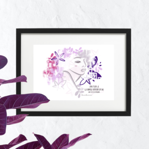 ilustración “Mujer y Naturaleza abstracta”, lámina decorativa mujer tinta negra, lámina ilustrada mujer