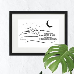 ilustración “Chica estrellada número 2”, lámina decorativa dibujo chica lineas, ilustración chica y luna turquesa
