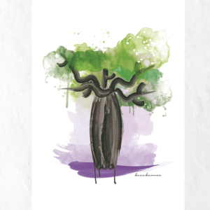 Baobab lámina decorativa, ilustración baobab, ilustración árbol africano, árbol exótico arte.