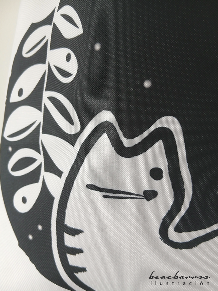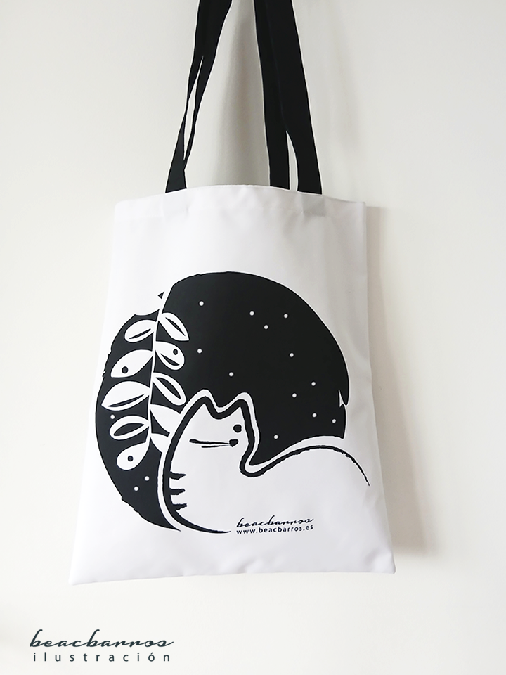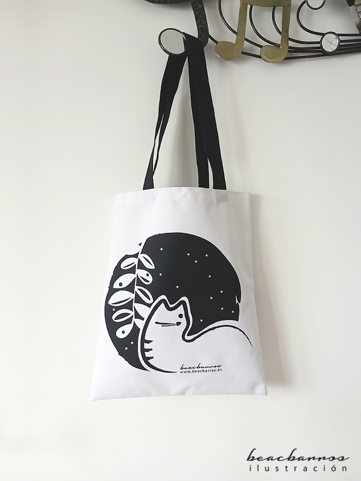 Bolsa gato, tote bag ilustrada a dos caras gato y luna.