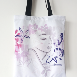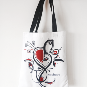 Colorida bolsa de tela artesanal: pintada a mano. Bolsa de tela floral, creada con pinturas acrílicas y purpurina. Bolsa única, en tonos rojos y violetas, lista para enviar.