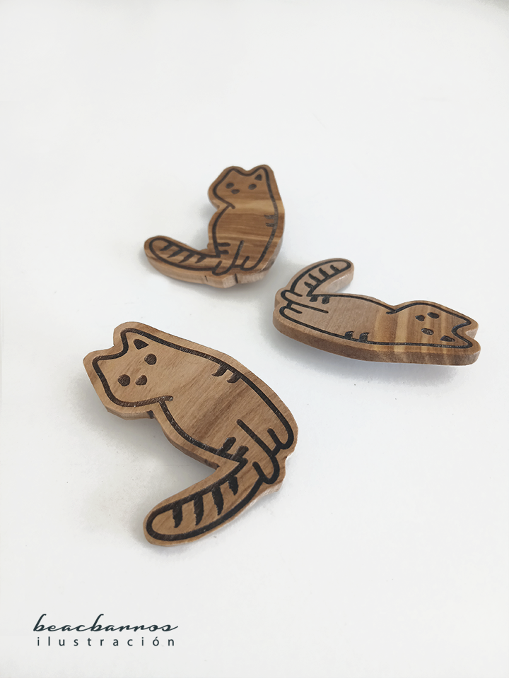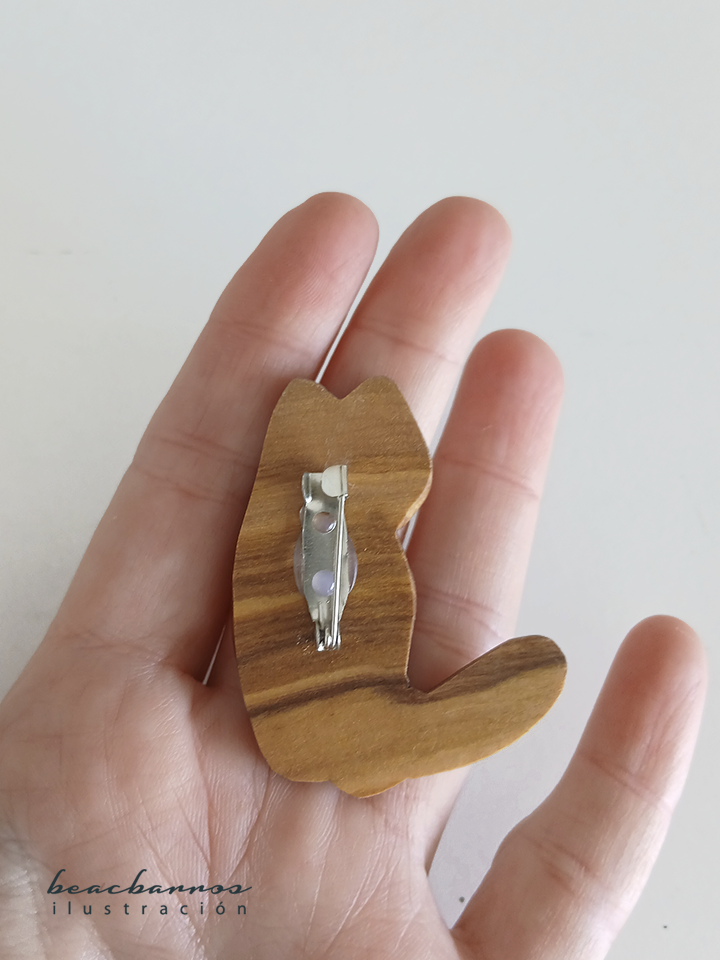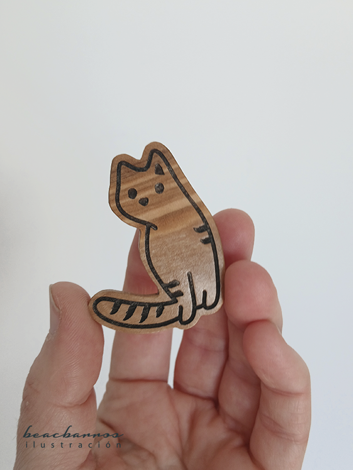 Broche artesanal basado en una de mis ilustraciones originales: “Gato a rayas”.