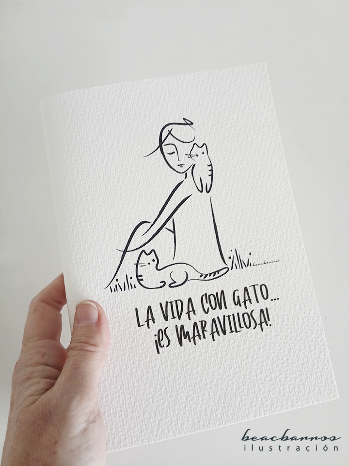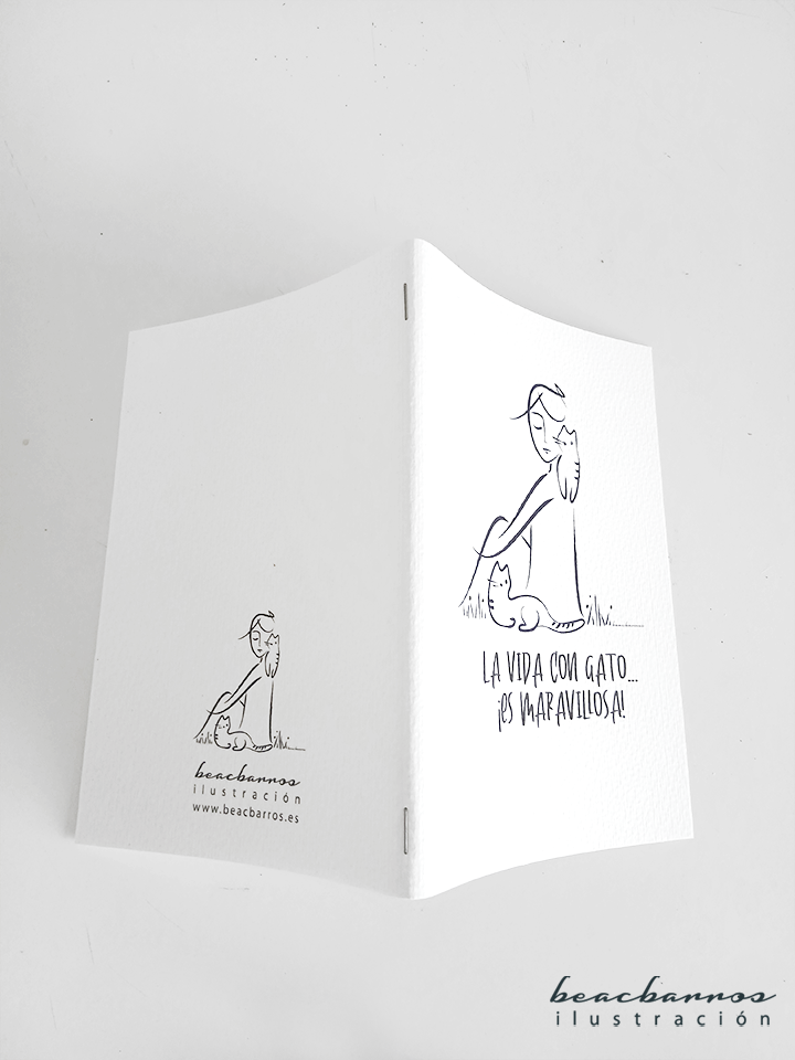 Libreta artesanal ilustrada con una de mis obras gatunas. Portada y contra realizadas en papel acuarela de 240 gramos. Ilustrada en ambos lados.