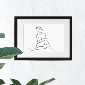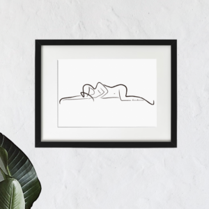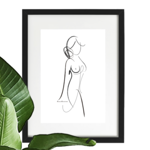 “Luna susurrando a mujer desnuda”: desnudo femenino, arte abstracto y minimalista en blanco y negro.